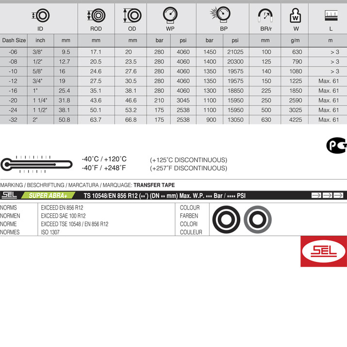 CUBIERTA: ACEITE HIDRÁULICO, ABRASIÓN E INTEMPERIE CAUCHO SINTÉTICO RESISTENTE ESPECIAL.